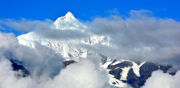 梅里雪山在藏区称“卡瓦格博雪山”,当地的藏族人民为它命名,赋予它神性,是藏区八大神山之首,其著名的“日照金山”是很多人梦寐以求难得一见的胜景。其海拔6740米的主峰至今仍是未被征服的“处女峰”,也是唯一因文化保护而禁止