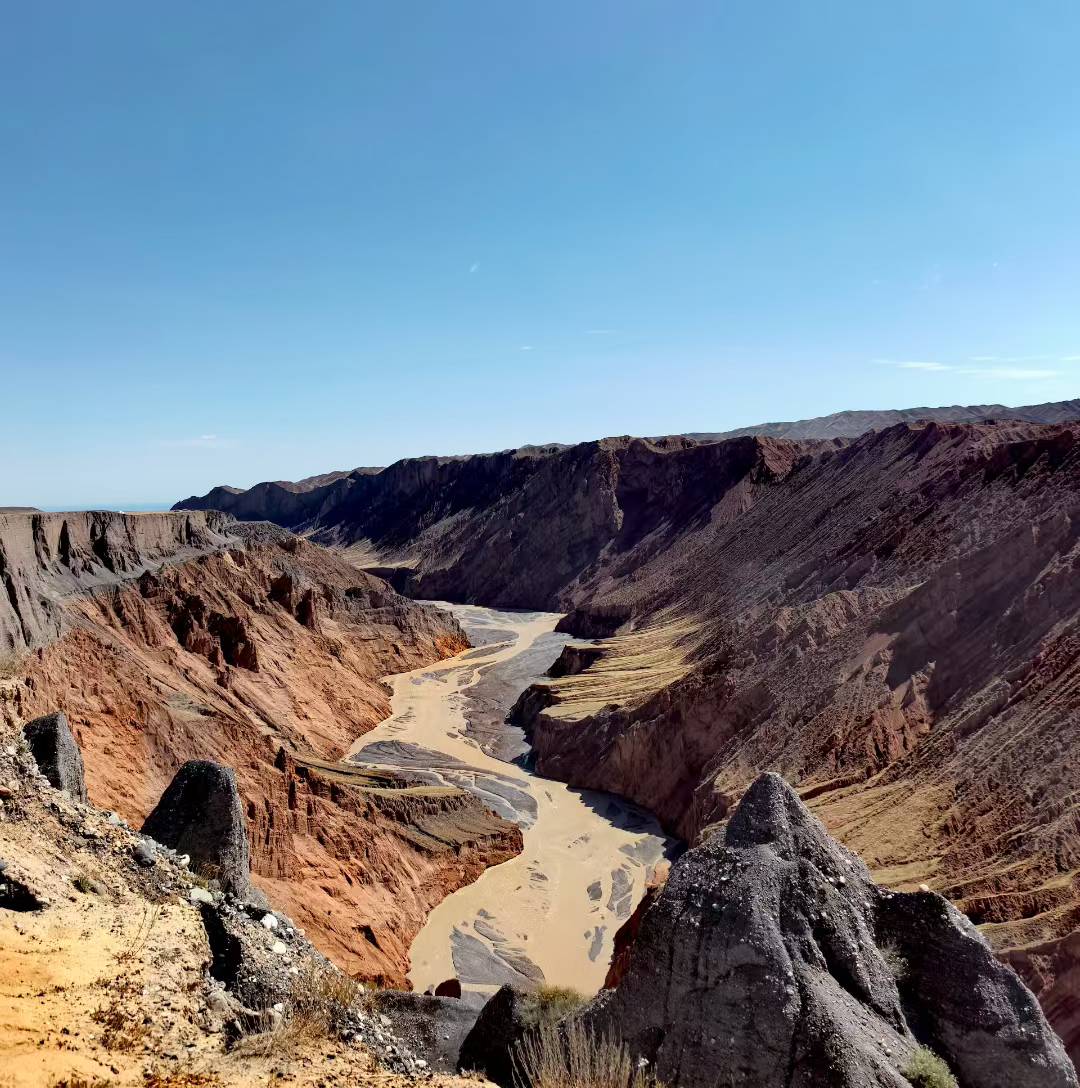 安集海大峡谷,别称红山大峡谷,发源于天山山脉,通过长年冲刷,在通古特附近冲出天山峡谷,在天山北坡下形成了规模宏大的冲击扇,河谷冲击扇规模宏大,以伞形向北张开,甚称地质奇观。此处非景点,本地人知道也不多,几乎无游人