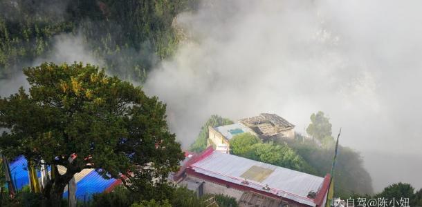 置身于卡久寺,四周忽而云雾升腾、云海涌波,忽而又云开雾散晴空方里,漫步其间就如同神仙漫步云海,这里地处中国与不丹边景,在卡久寺远眺便是【不丹王国】;