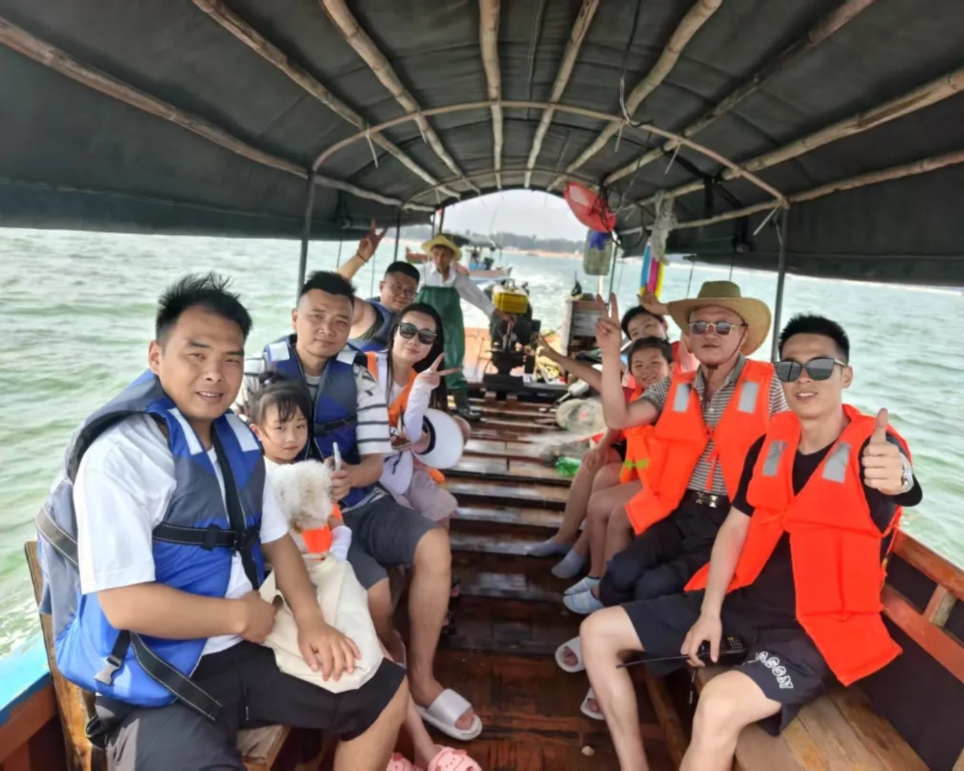 然后前往【万尾金滩】,我们特别安排了【出海捕鱼】体验。