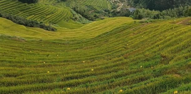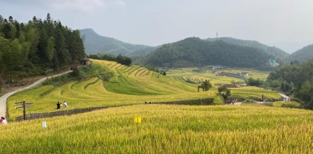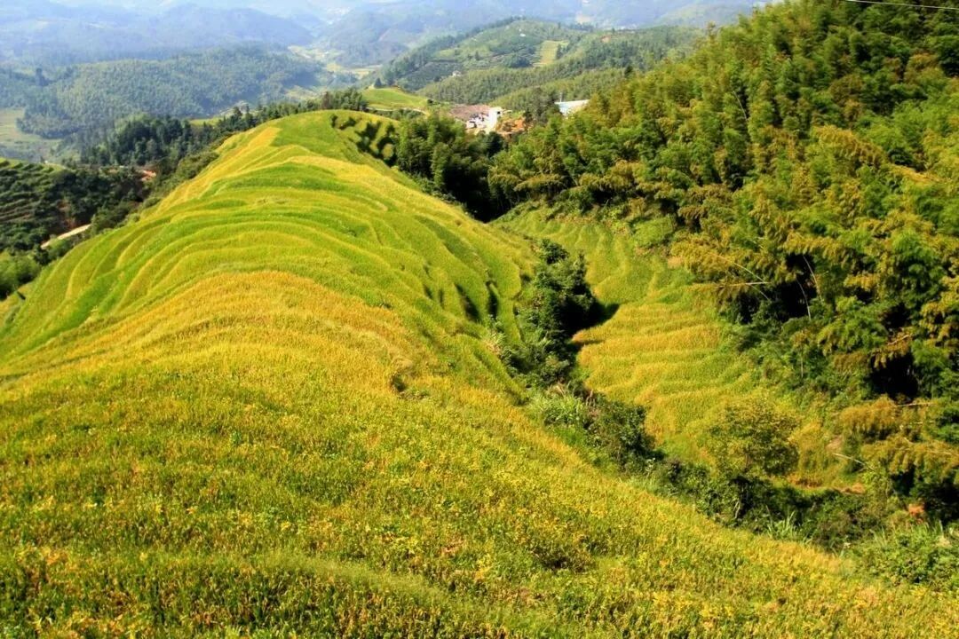 世界最大的客家梯田——上堡梯田举行上堡梯田被评为 “全球重要农业文化遗产” “世界灌溉工程遗产” 当丰收遇见国庆,万亩梯田稻浪金黄。