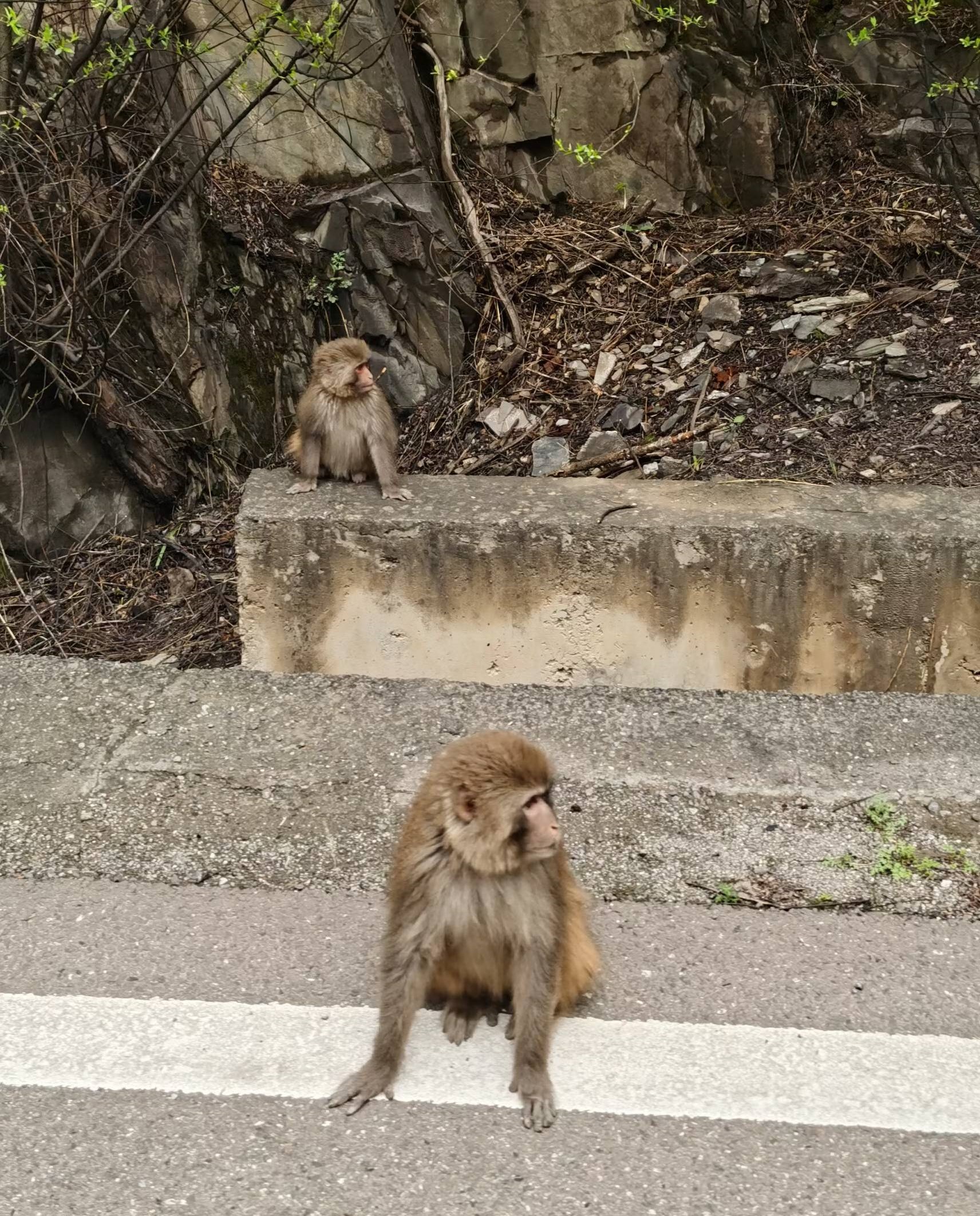 早餐后出发,第一站到达翁达【藏猕猴观景台】,路边有一群野生藏猕猴,它们已经习惯了来往的车辆,可以将随身携带的临时丢给它们,需要注意,不要近距离接触,以防被抓伤。