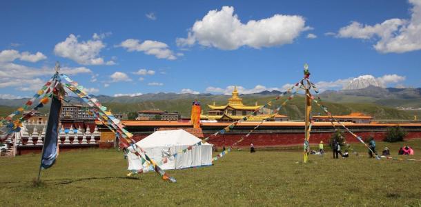 塔公草原位于四川省甘孜藏族自治州康定市塔公镇境内,海拔3730米的高原地带,川藏公路穿境而过。塔公草原广袤宽阔,地势和缓,缀于川西高原山河相间的朗朗环境之中。辽阔原野之上,牧民们驱赶牛羊逐水草而居,如同悠扬粗犷的牧歌亘