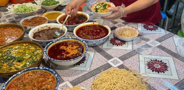 和田夜市位于人民西路,占地面积4600平方米,有一个狭长封闭的大棚空间,全长272米,很工整的按照两侧摆放,共有260个摊位,据说这里有100多个品种的美食。在这里只要你想吃的东西都能找到,天南海北,各种口味,应有尽有,品种丰富得