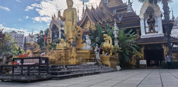 总佛寺傣语称为“洼巴洁”,是西双版纳佛教信徒朝圣的中心,解放以前是西双版纳地区最高统治者及其土司头人拜佛的圣地,也是西双版纳佛寺中等级最高的佛寺。主要有维罕大殿、佛学院教学楼等建筑。现今的院楼北墙前筑有供坛,供有