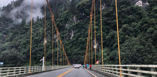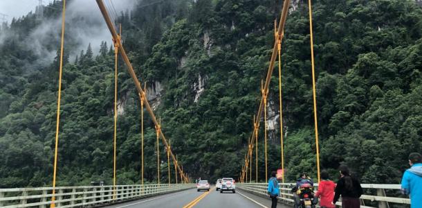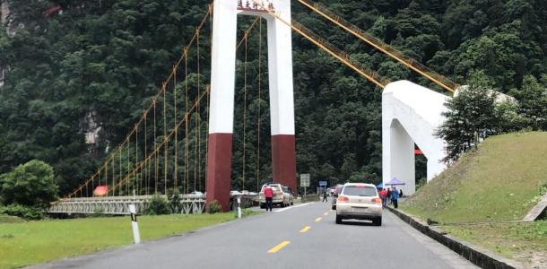 通麦大桥是川藏公路318国道的咽喉工程,是一座临时保通性工程。大桥设计为双塔双跨悬索桥,跨越帕隆藏布的支流易贡藏布,全长258米,主跨为210米,高31.5米,该桥的建成使中断的318国道得以畅通。