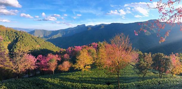 无量山樱花谷位于云南大理州南涧县,在无量山国家级自然保护区周边,与灵宝山国家森林公园相邻。每年12月中旬,全国大部分地方刚刚进入冬季。而南涧县的春天,却已经悄然来临了,无量山樱花谷的樱花都开了,绚烂的冬樱花争奇斗艳,