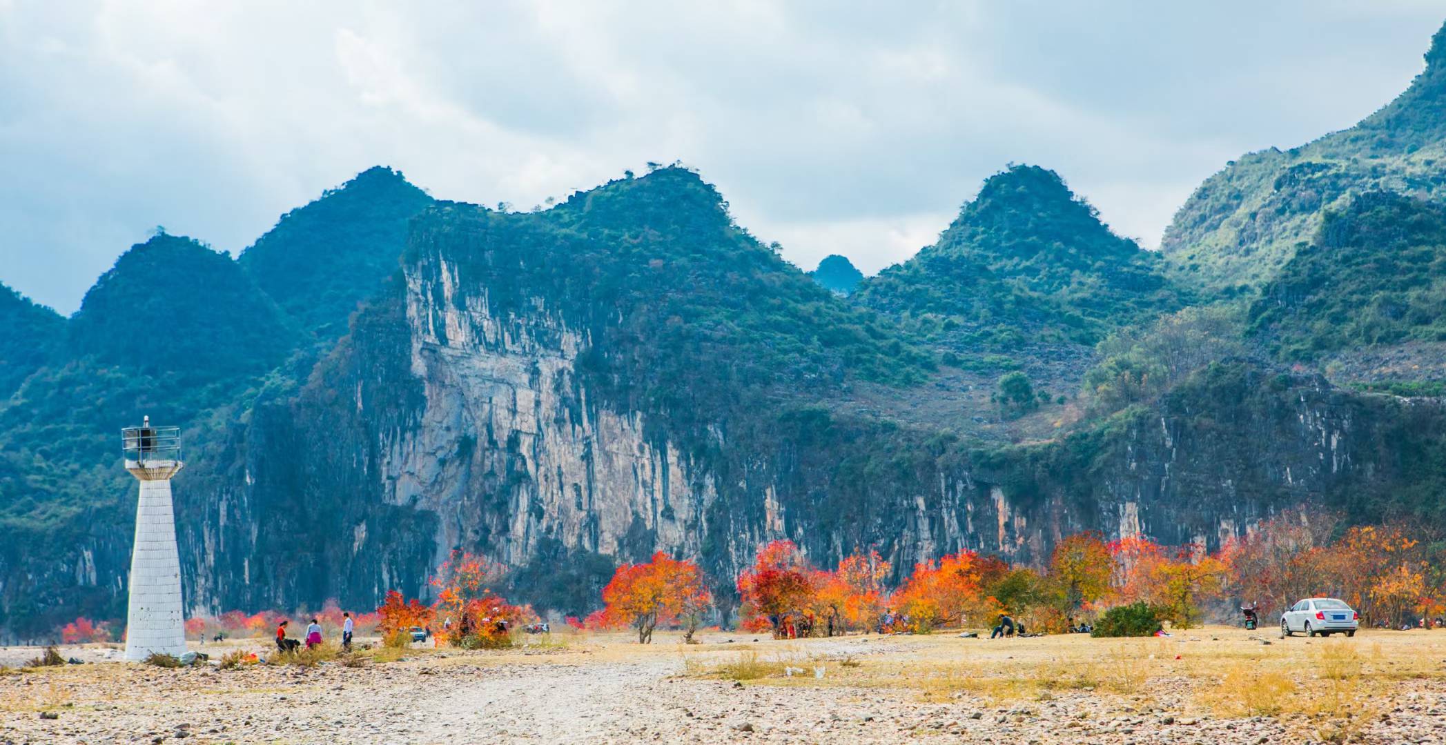 乌桕滩是桂林市区处于漓江的一个河湾,位于竹江村河滩上的一片乌桕树林。每逢秋冬时节,树叶红透,三五处红叶,清澈的漓江流水,素有“小九寨沟”之美誉。秋冬时节的乌桕滩能体现漓江的魅力风情,高处俯瞰乌桕滩,宛若一幅诗意盎然的水墨画。