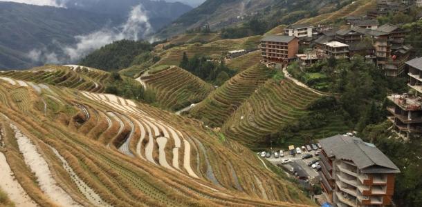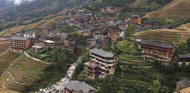 早餐后车队开始龙脊梯田景区游览。龙脊梯田是桂林地区一个规模极为宏大的梯田群,线条行云流水,潇洒柔畅;