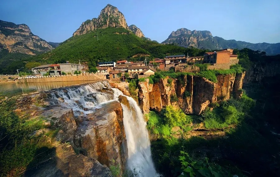 碧蓝是那如洗的蓝天和湖水,如同碧玉镶嵌山谷之中。沿着蜿蜒曲折的溪水的穿越深山峡谷,观赏峡谷内瀑落成潭、潭潭相连山岭水秀景象,体会移步换景、景景相连的峡谷风情,走凌空栈道感受太行山峡谷的险峻和幽深,更能体验高空玻璃栈道挑战自己的胆量。
