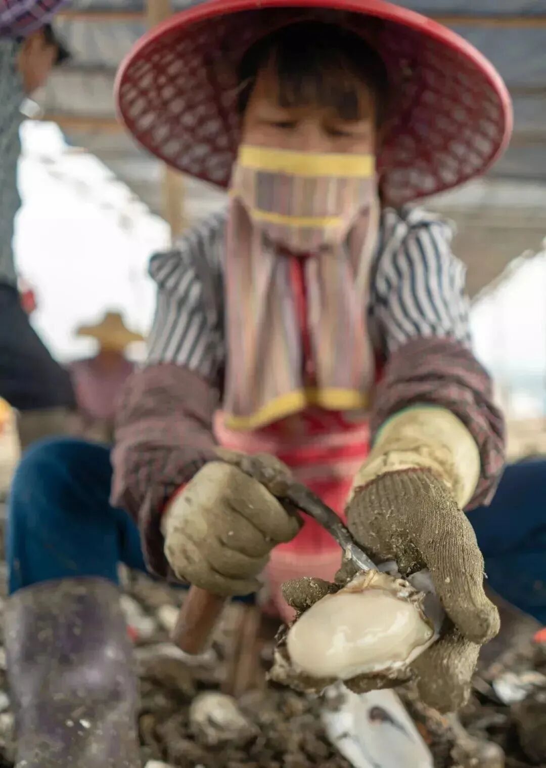 指定时间:霞涌服务区集合,出发前往惠东铁涌,到达惠州铁涌生蚝养殖场,现场看渔民开蚝;