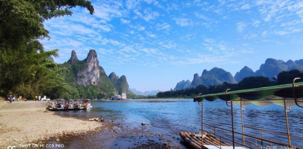09:30酒店大堂集合队友乘坐【三千漓竹筏】清晨下乘坐竹筏享受惬意的茶歇;