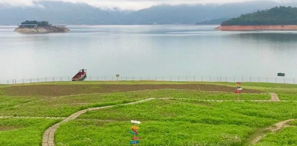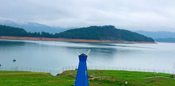 东江大坝是一座具有重要意义的水坝,据说是我国自行设计,自行建造的第一座双曲薄壳拱坝,1958年开建,中间停建,一直到1992年才全面建成。大坝气势恢弘,大气磅薄,从坝上俯瞰整个湖面,碧波荡漾,美不胜收,而坝下雾漫小东江景色,