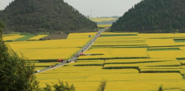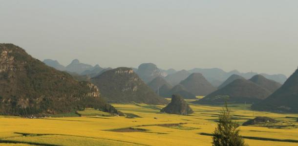 罗平金鸡峰丛是中国四大峰丛之一,座座独峰犹如花海中荡漾的岛屿,群峰耸立,山形万象,置身于花的世界,眼前是一望无际的金黄色海洋,令人目不暇接。这峰林美景吸引了众多中外游客,金鸡峰丛也成为海内外摄影家纷至沓来的一块摄