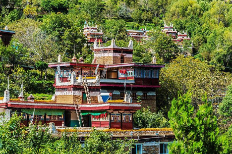 4.五明佛学院:色达喇荣五明佛学院是由晋美彭措法王1980年创办,在短短数年间从藏区一个山谷深处迅速崛起,一跃成为世界上最大的藏传佛学院。在重重的群山环绕之中,以佛学院的大经堂为中心,密密麻麻搭满了四面的山坡,不计其数的绛红色小木屋,延绵无数,一眼望不到头。三万多出家僧众在此修行居住。