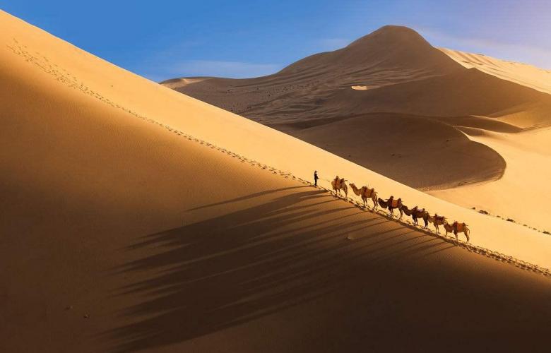 鸣沙山月牙泉:鸣沙山月牙泉风景名胜区位于甘肃省敦煌市城南5公里处,主要景点有月牙泉、鸣沙山。月牙泉处于鸣沙山环抱之中,其形酷似一弯新月而得名。“中国最美的五大沙漠之一”,国家AAAAA级旅游景区。