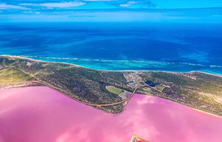 卡尔巴里国家公园与袋鼠一起挥杆打高尔夫粉红湖Hutt Lagoon