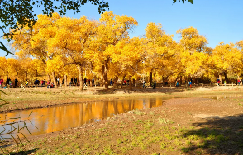 1。在祖国的北疆,在那片金色大漠最柔软的深处,伫立着一片金色的胡杨,从二道桥到八道桥的胡杨林,被中外摄影爱好者誉为“最美摄影长廊”。