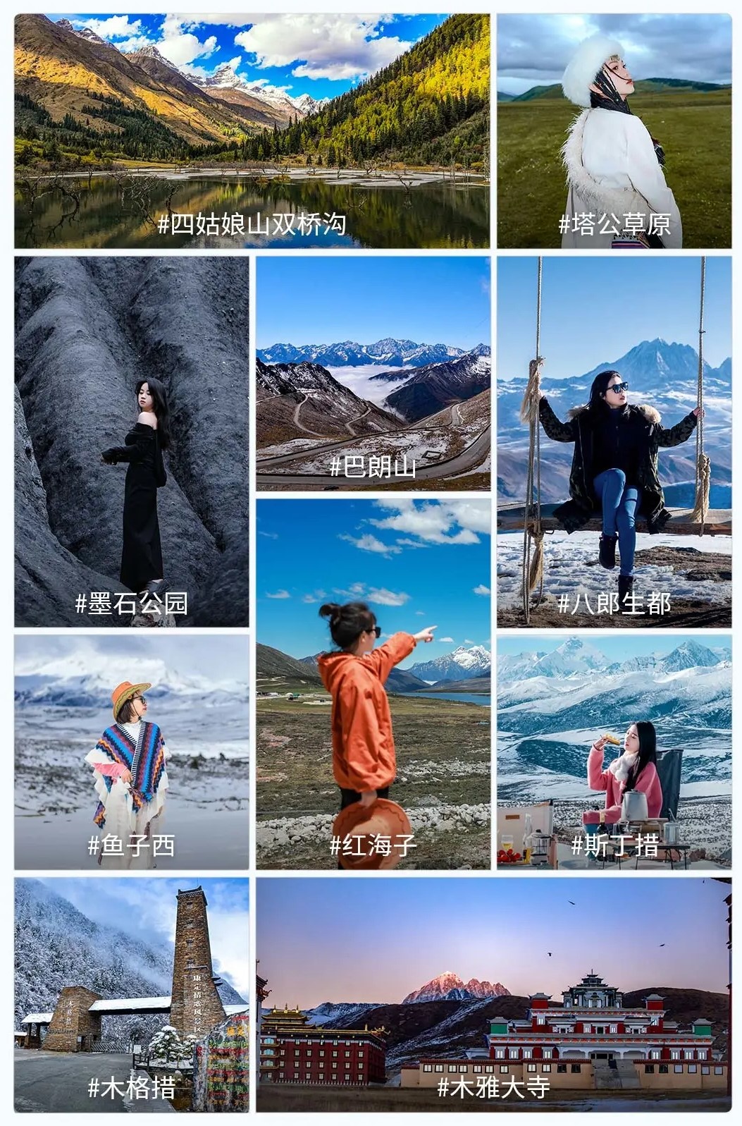甲居>墨石公园>塔公>鱼子西>新都桥