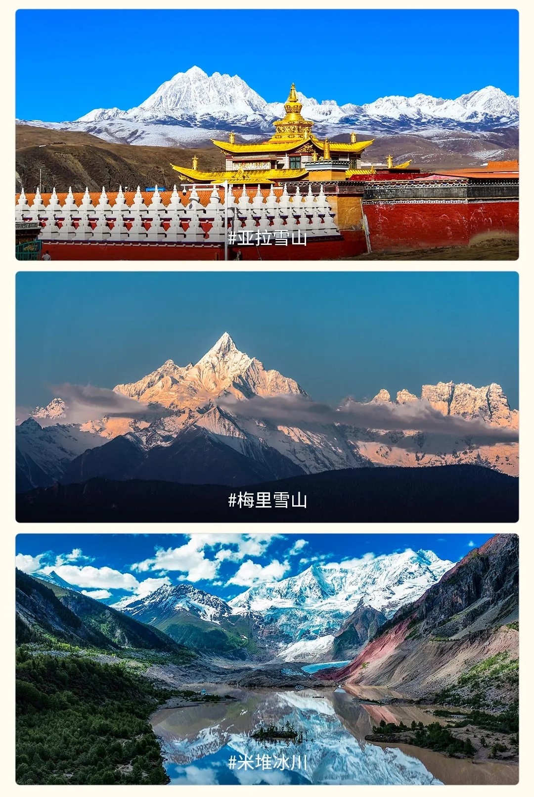 怒山(梅里雪山)、伯舒拉岭(米堆冰川);