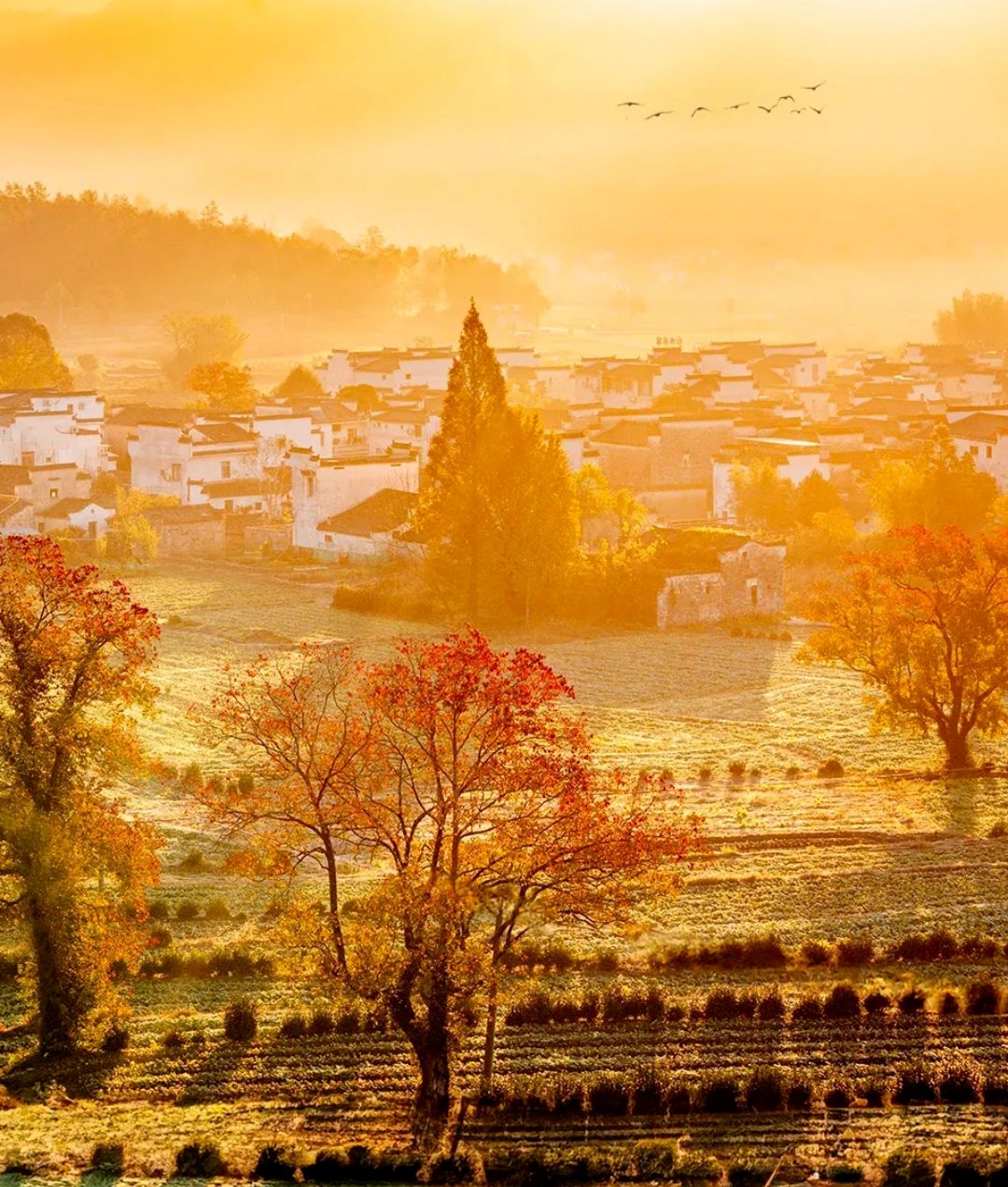 它不仅有诗意的古村落,有炊烟袅袅的田园风光,更有2000余亩金黄火红落羽红杉林。