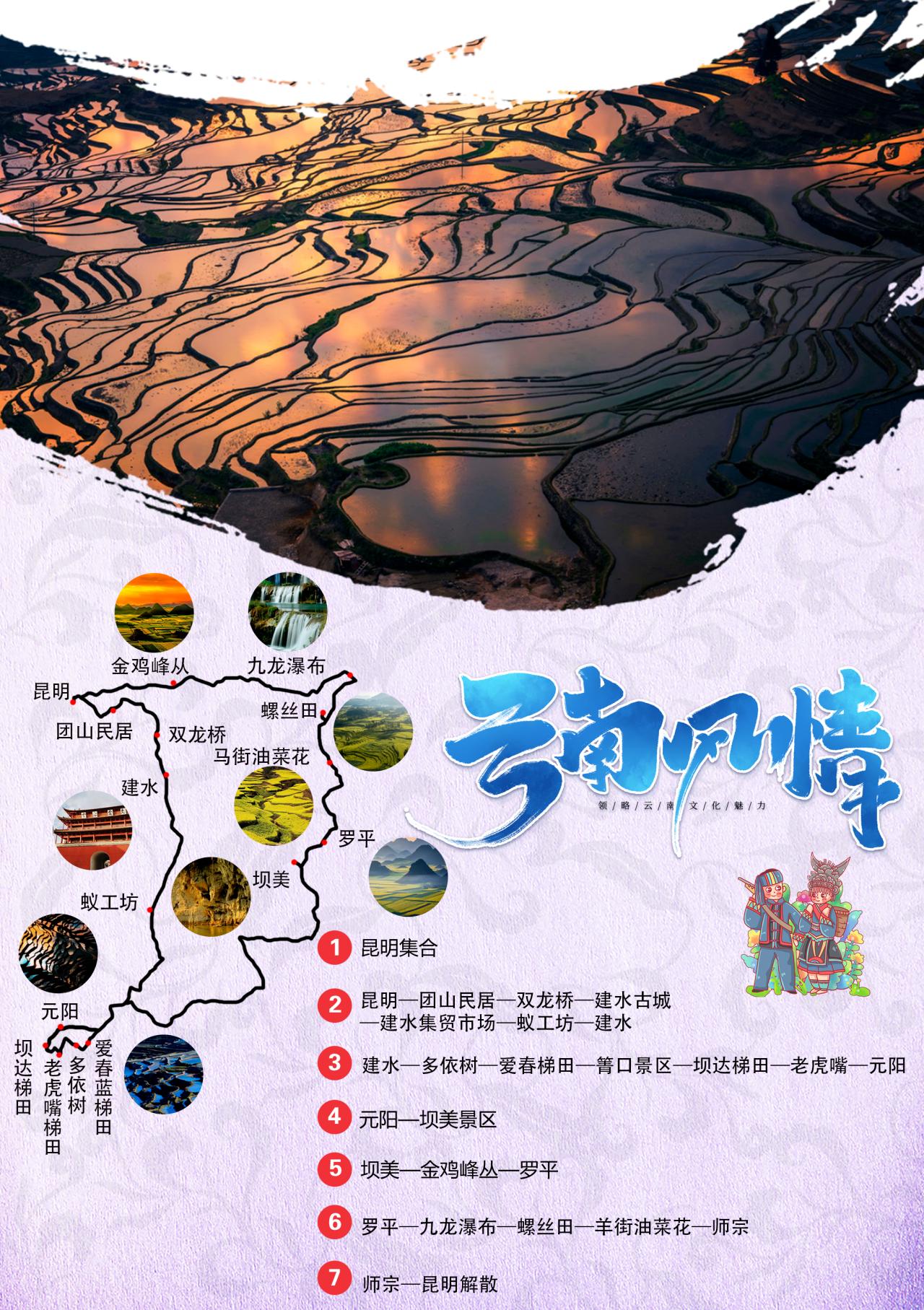 昆明集合云南滇东南环线7日自驾游路线图:
