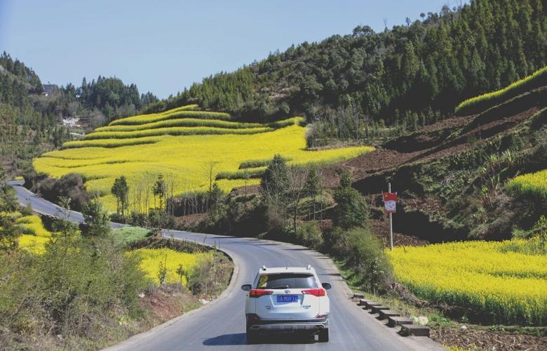20万亩油菜花田里的喀斯特丛林肆意徜徉在无边花海。