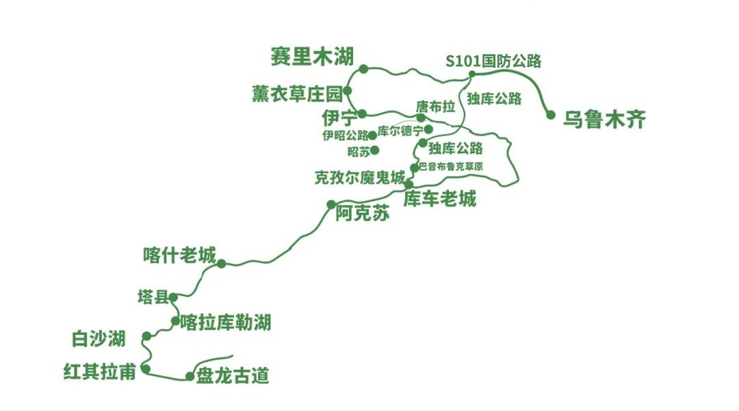 乌鲁木齐出发伊犁南疆13日自驾游路线图: