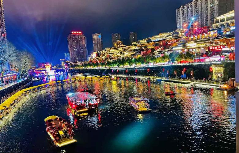 焰火为笔,漫天星空写意;河水作镜,映照一城繁华。